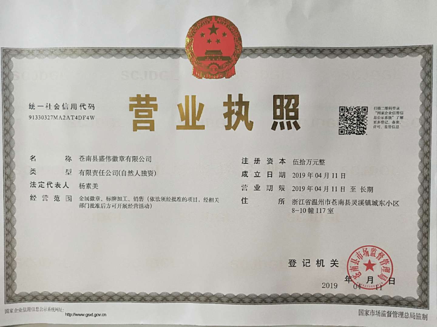 蒼南縣盛偉徽章有限公司成立于2019年,是一家專注于警徽產(chǎn)品設(shè)計、、銷售和產(chǎn)品維護(hù)的徽章廠家。多年來,我們一直嚴(yán)格要求自己,以優(yōu)良產(chǎn)品和誠信為本的理念經(jīng)營,不斷推動企業(yè)的發(fā)展壯大。我們注重人才培養(yǎng),不斷引進(jìn)先進(jìn)的經(jīng)營理念和管理模式,以滿足企業(yè)長期發(fā)展和擴(kuò)大的需求。
